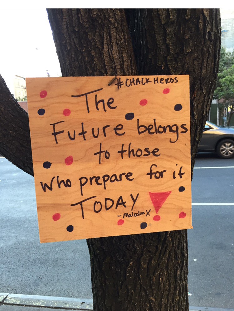 Above the message from Malcom X it was signed: #CHALK HEROS