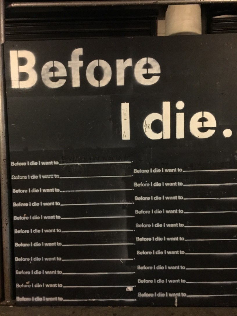 A church on 116th street in Harlem put up a giant chalk board encouraging passersby to write down what they want to do before they die.