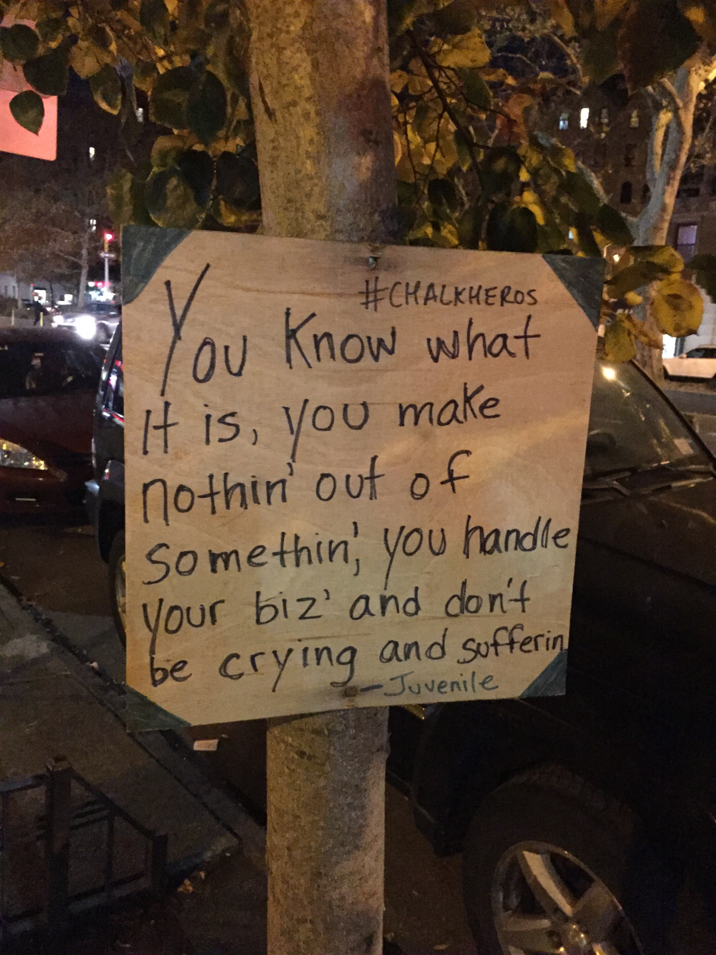 I Googled #Chalk Heros and learned its a group founded in 2015 by a woman from Brooklyn named Roszie Energy.