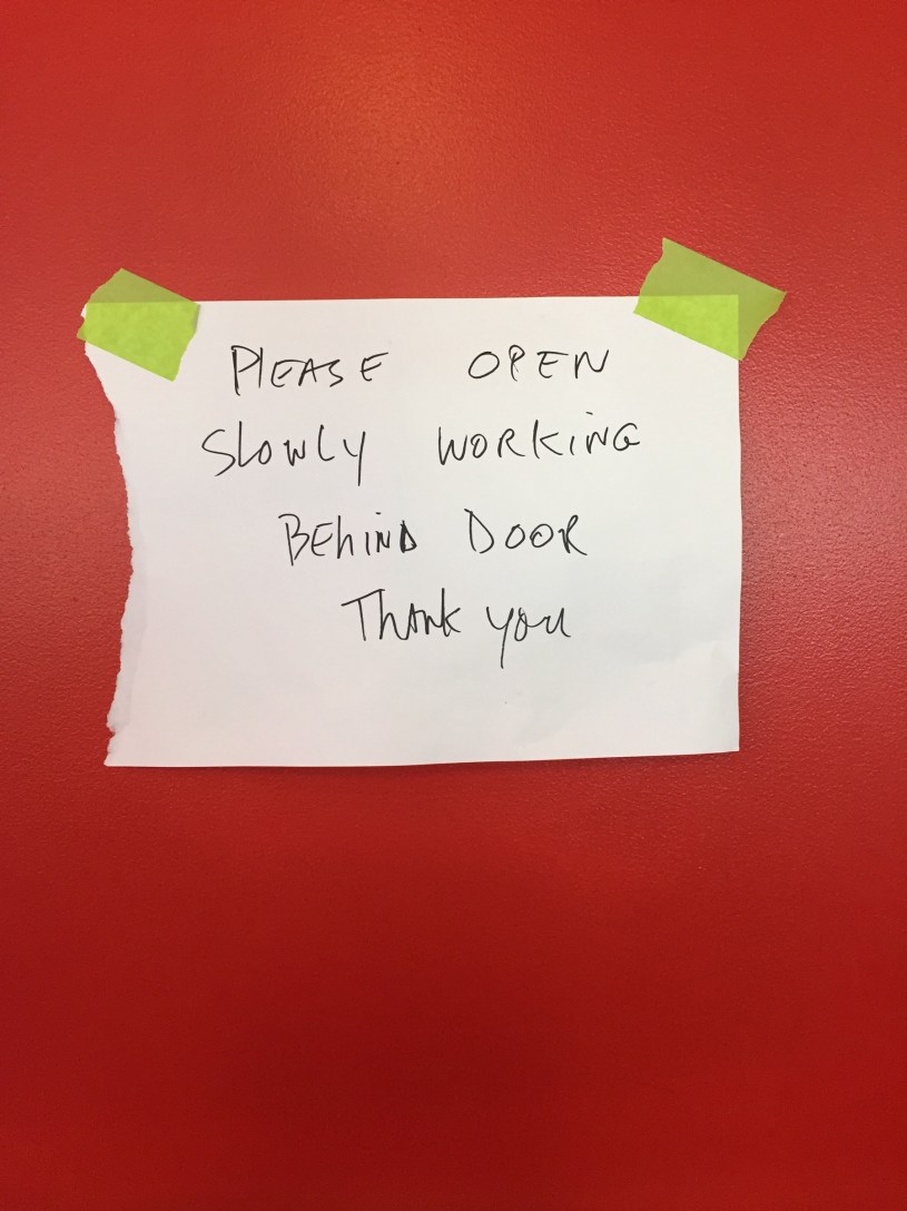 Later that afternoon I saw a colleague barge right through the door without pausing.