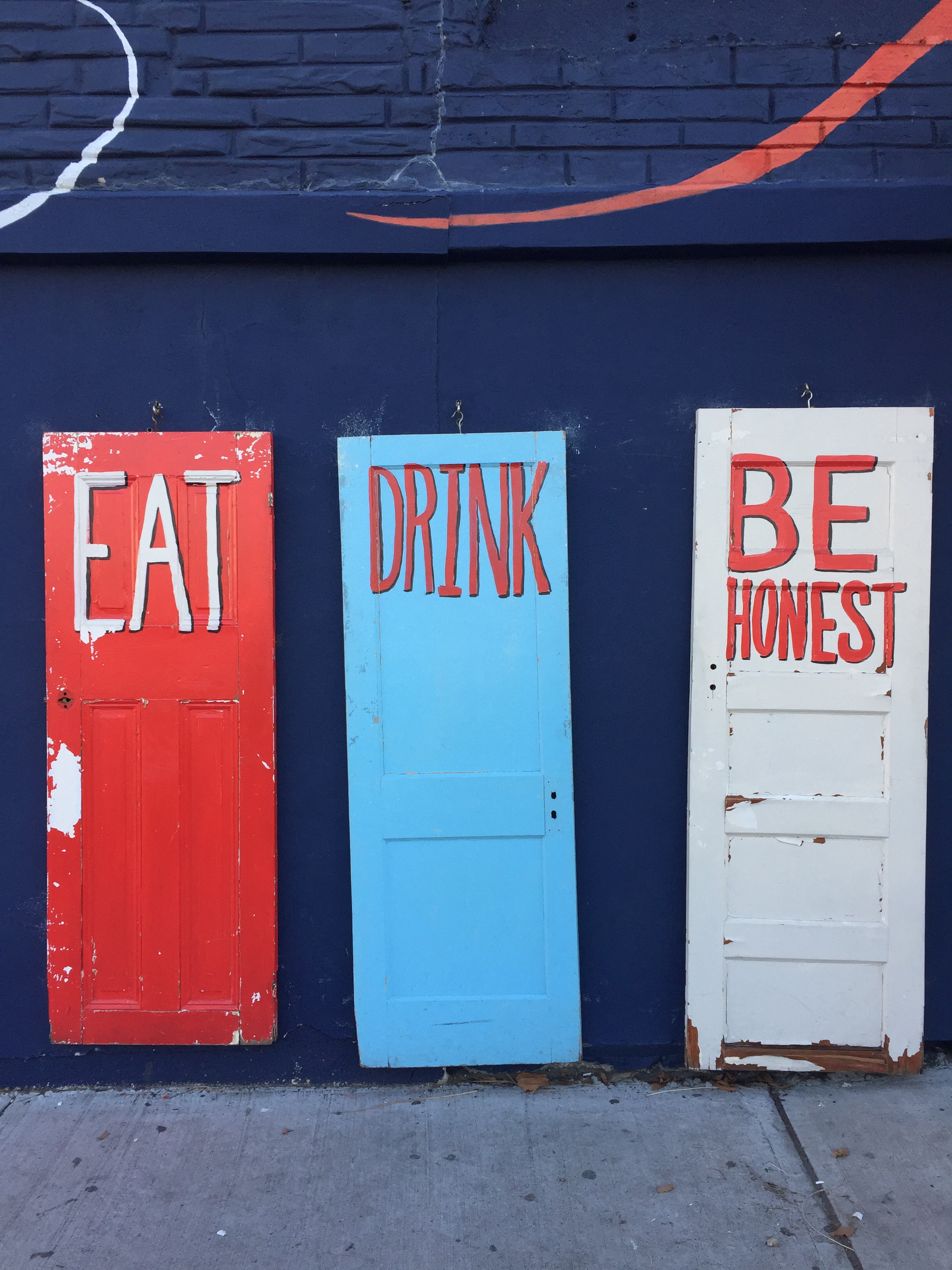 My favorite sign is a triptych outside the best pizza place in Asbury Park. It is simple, but original and memorable.