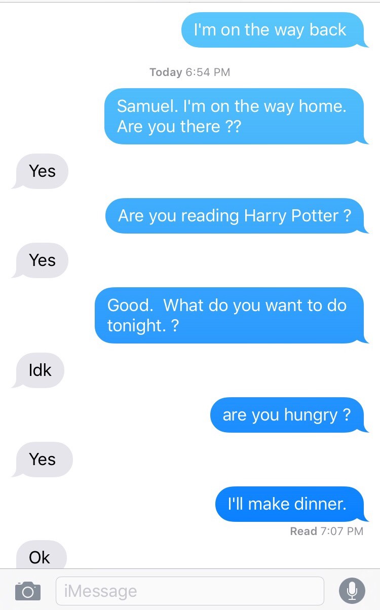 Most of the time they group text. He texts the Friend Group all the time. The phone barely buzzes before its out of his pocket. His fingers fly across the digital keyboard. The responses are short and fast.