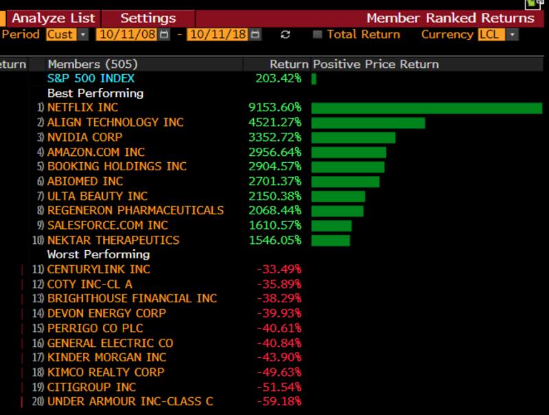 Ten years ago Netflix shares plunged after forecasting weak subscriber growth. Investors were worried about competition from Blockbuster. Piper Jaffray analyst Michael Olson said it was a buying opportunity. He turned out to be right. S&P 500 performance since then: