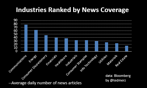 The chart shows the average number of daily stories carried on Bloomberg per company in each sector.