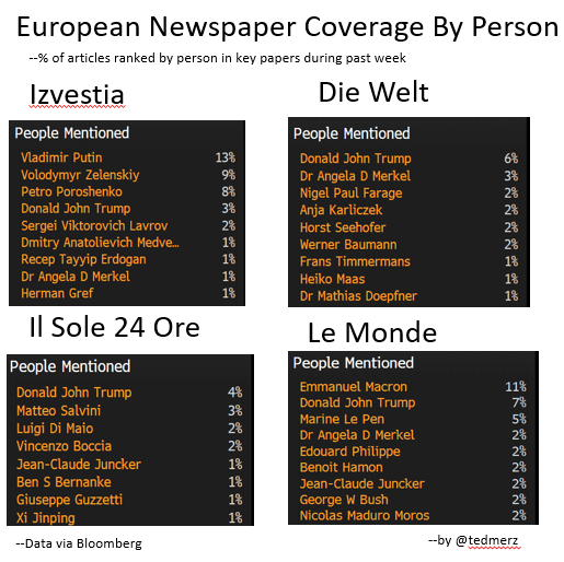 I pulled data on Bloomberg from the past week that ranks the percentage of articles in each publication dedicated to specific individuals.