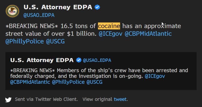 This post shows an announcement by the U.S. Attorney’s office in the Easter District of Pennsylvania announcing a major drug bust. This was the “official” announcement.