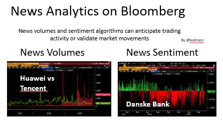 These charts can be visually compelling. The volume of news on Tencent versus Huawei tells a great story. The sentiment of articles written about Danske Bank tells another.