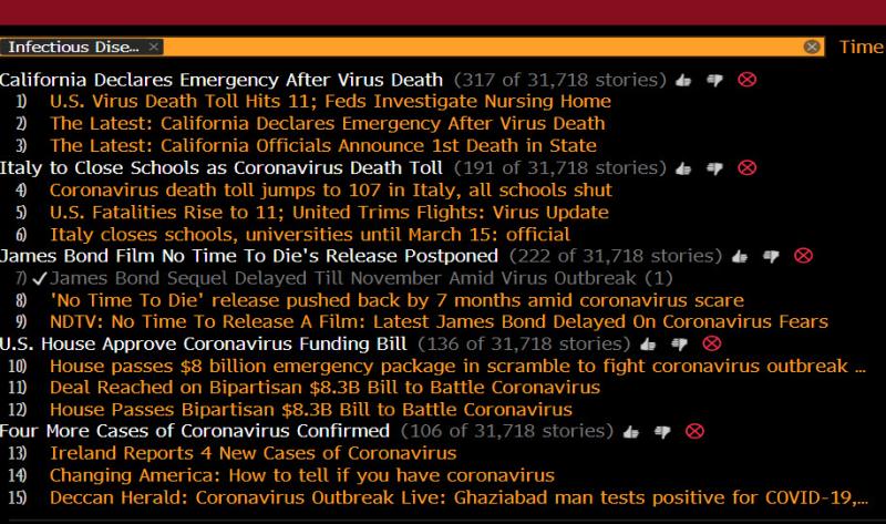 In the past day Bloomberg has carried 31,000 stories about the pandemic. Given the global nature of the outbreak, there is a wide array of different angles.