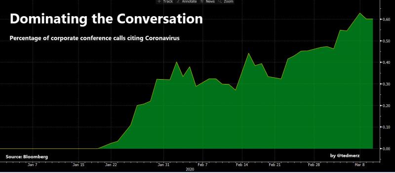 Bloomberg data shows that about 60 percent of the calls companies hold each day to make investor presentations or discuss earnings mention the outbreak.