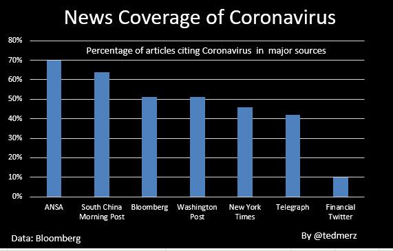 About half of the articles written in the past few days by Bloomberg, the New York Times and the Washington Post cite coronavirus.