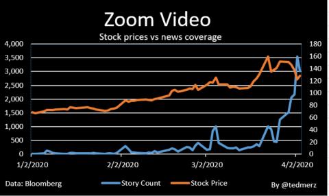 A week after that my parents were on a Zoom call with friends as awareness of the company skyrocketed, a reality captured in my chart of daily news coverage. (Note: data comes from 175,000 sources aggregated on the Bloomberg terminal.)