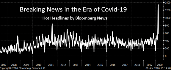 The chart shows editors are sending out three times as many headlines during the covid-19 crisis as during normal periods.