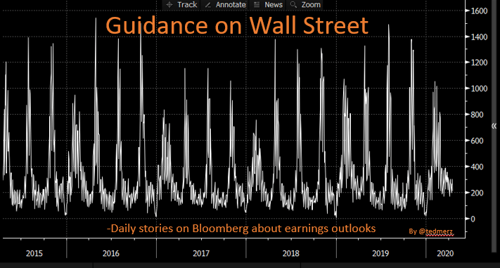 So if you are looking for a chart that never changes I have one for you: the number of news articles about “guidance.”