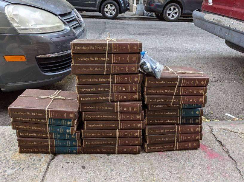 Walking around New York City last week I stumbled across a full set of the Encyclopedia Britannica on the curb for recycling. It was a jolt from the past.