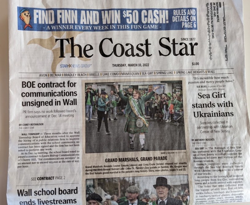 The Coast Star newspaper has a circulation of 11,530 and serves a dozen towns along the Jersey Shore. It’s been operating since 1877.