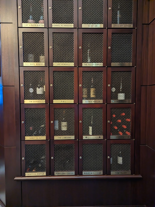A few days later in Texas I had lunch downtown at The Capital Grille. The restaurant has wine lockers with brass name plates so the regulars can bring their own bottles to have on hand when they come to eat.