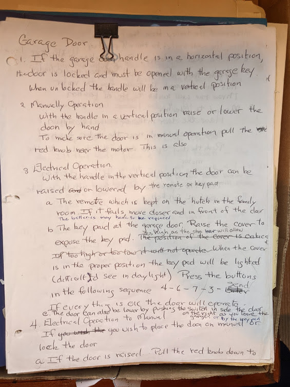 My father’s full-page instructions on how to operate the garage door are a model of clarity and linear thinking.
