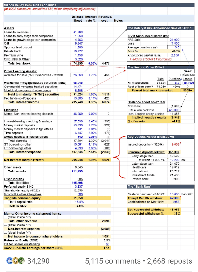 One post dissected the deposit and loan economics at Silicon Valley Bank. You can download the spreadsheet for yourself.