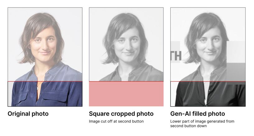 “AI invented the bottom part of the image…in which it believed that women’s shirts should be unbuttoned further, with some tension around the buttons, revealing a little hint of something underneath. 😳”