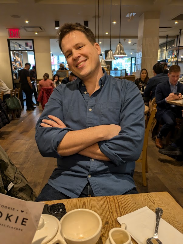 I met up with Matt Robinson at the Pain Quotidien at Columbus Circle. I had the small cappuccino because the large ones are ridiculously huge. Matt had coffee and cream.