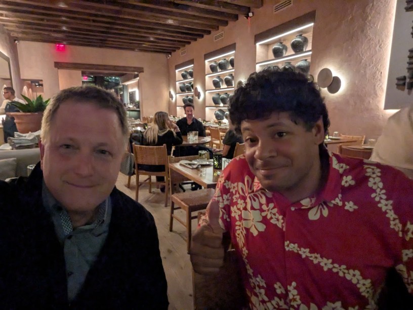 Michael was in town from Salt Lake City for the Sohn Conference. He convened the group at Casa Carmen on Franklin Street.