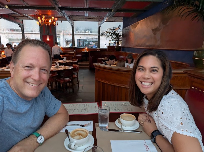 Sarah had the banana pancakes. She asked if I was going to virtue signal by ordering the yogurt granola parfait. I was not. I got the scrambled eggs with bacon and rye toast.