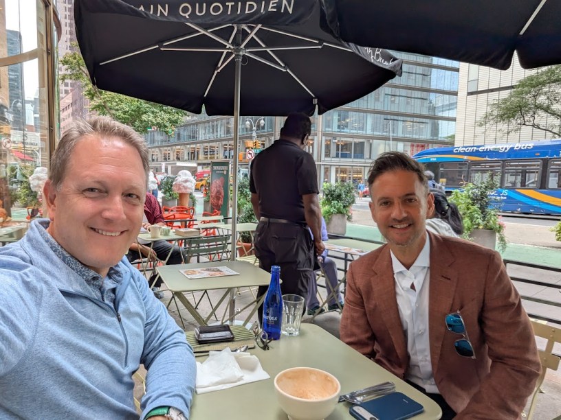 I met up with Lee Bressler, the founder of Spring Close Advisors at Le Pain Quotidien near Columbus Circle. I had the granola and berry parfait and coffee. He had the omelet.