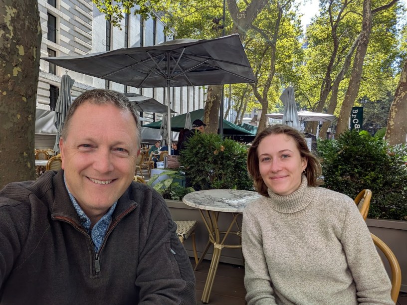 I met up with Cecilie Larcher, a recent graduate of the University of Chicago who is interning at ABC News, at the Bryant Park Cafe.